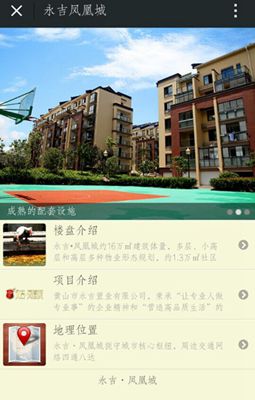 飛天傳媒從微信公眾平臺上線伊始,就一直在研究公眾微信如何為房地產(chǎn)企業(yè)服務(wù),此次為永吉鳳凰城開發(fā)的微信平臺主要有以下幾個方面(搭建的微信服務(wù)主要根據(jù)購房者的需求搭建,購房者關(guān)注什么,就提供什么):樓盤簡介