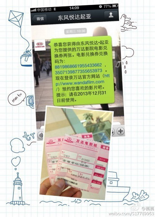依托強(qiáng)大的微信平臺(tái),東風(fēng)悅達(dá)起亞拉開了微信搶票的序幕。和傳統(tǒng)網(wǎng)頁搶票的方式不一樣的是,此次微信搶票的活動(dòng)參與方式特別簡(jiǎn)單。消費(fèi)者只要光臨任何一家東風(fēng)悅達(dá)起亞4S店,掃描海報(bào)中的微信二維碼然后加關(guān)注后就能迅速參與砸金蛋的游戲了。為了提高中獎(jiǎng)率,消費(fèi)者只需將活動(dòng)或者獲獎(jiǎng)信息分享到朋友圈,并將截屏上傳給東風(fēng)悅達(dá)起亞官方微信,就有機(jī)會(huì)獲得2張電子電影兌換。