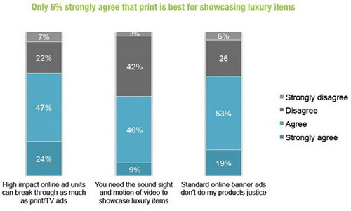不光是電視媒體,似乎印刷媒體更慘。只有6%的被調(diào)查者認為印刷媒體是展示奢侈品產(chǎn)品的最好載體。