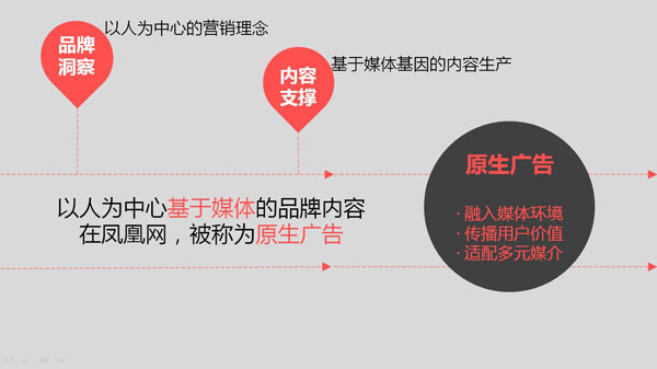 對(duì)此,鳳凰網(wǎng)提出了一套面向新時(shí)代的營(yíng)銷解決方案:原生廣告,即幫助企業(yè)建立以人為中心,基于媒體形態(tài)而構(gòu)筑品牌內(nèi)容的營(yíng)銷體系。