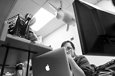 員工在“極客實(shí)驗(yàn)室”的電腦前工作