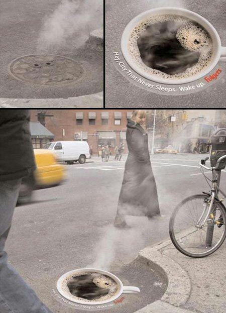 9.Folgers咖啡街頭創(chuàng)意井蓋廣告