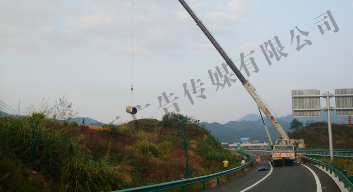 黃祁景高速黟縣漁亭下口收費(fèi)站處高架廣告牌施工
